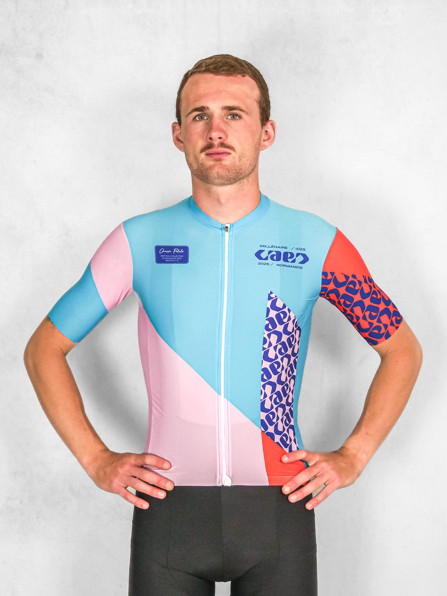 Ce maillot a été imaginé pour célébrer un moment exceptionnel : les 1000 ans de la ville de Caen. Il fait partie d’un duo collector créé pour marquer le passage du Tour de France 2025 en Normandie.